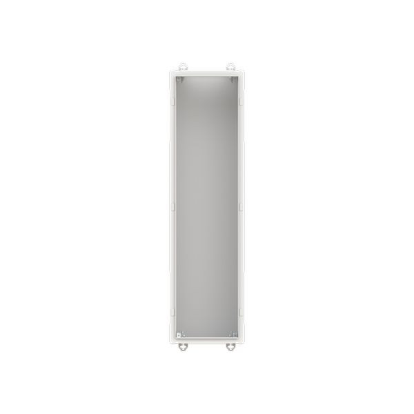 Wandschrank, Baureihe TwinLine, Leerschrank, Montageart: Aufputz, teilversenkt, für den Innenbereich, ohne Tür, Schutzklasse II (schutzisoliert), Schutzart IP30, geltende Normen: DIN EN 61439-1, VDE 0660-600-1, DIN EN 61439-2, VDE 0660-600-2, DIN EN 61439-3, VDE 0660-600-3, IK-Code 08, pulverbeschichtet, in RAL 7035, Gehäuse aus Stahlblech, ohne Tür, Rückwand aus Stahlblech, Leitungseinführung oben über Flanschöffnung ausgeschnitten, unten über Flanschöffnung vorgeprägt, seitlich über Flanschöffnung vorgeprägt, Abmessungen in mm (H x B x T): 1100 x 300 x 275, Rasteinheit 7 RE, Bauhöhe 3, Feldbreite 1, Platzeinheiten 84, vorbereitet für den Ausbau mit Zähler-, Verteilerfelder, Kombi-Sets, CombiLine-Module auf EDF-/WR-Montagegerüst