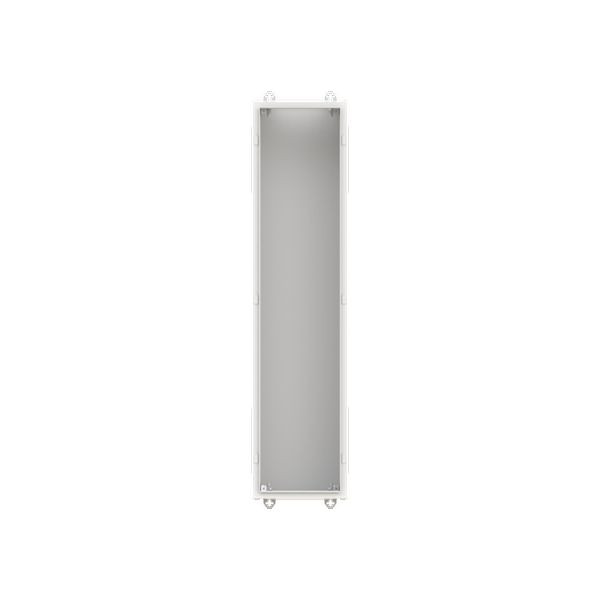 Wandschrank, Baureihe TwinLine, Leerschrank, Montageart: Aufputz, teilversenkt, für den Innenbereich, ohne Tür, Schutzklasse II (schutzisoliert), Schutzart IP30, geltende Normen: DIN EN 61439-1, VDE 0660-600-1, DIN EN 61439-2, VDE 0660-600-2, DIN EN 61439-3, VDE 0660-600-3, IK-Code 08, pulverbeschichtet, in RAL 7035, Gehäuse aus Stahlblech, ohne Tür, Rückwand aus Stahlblech, Leitungseinführung oben über Flanschöffnung ausgeschnitten, unten über Flanschöffnung vorgeprägt, seitlich über Flanschöffnung vorgeprägt, Abmessungen in mm (H x B x T): 1250 x 300 x 275, Rasteinheit 8 RE, Bauhöhe 4, Feldbreite 1, Platzeinheiten 96, vorbereitet für den Ausbau mit Zähler-, Verteilerfelder, Kombi-Sets, CombiLine-Module auf EDF-/WR-Montagegerüst