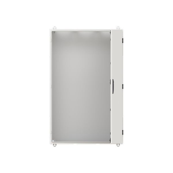 Wandschrank, Baureihe TwinLine, Leerschrank, Montageart: Aufputz, teilversenkt, für den Innenbereich, mit Tür, Schutzklasse I (geerdet), Schutzart IP55, geltende Normen: DIN EN 61439-1, VDE 0660-600-1, DIN EN 61439-2, VDE 0660-600-2, DIN EN 61439-3, VDE 0660-600-3, IK-Code 08, pulverbeschichtet, in RAL 7035, Gehäuse aus Stahlblech, einflüglige Tür, Tür aus Stahlblech, mit Standardverschluss Doppelbart 3 mm, Türöffnungswinkel 180 Grad, Türanschlag rechts oder links, Rückwand aus Stahlblech, Leitungseinführung oben über Flanschöffnung ausgeschnitten, unten über Flanschöffnung vorgeprägt, seitlich über Flanschöffnung vorgeprägt, Abmessungen in mm (H x B x T): 1250 x 800 x 275, Rasteinheit 8 RE, Bauhöhe 4, Feldbreite 3, Platzeinheiten 288, vorbereitet für den Ausbau mit Zähler-, Verteilerfelder, Kombi-Sets, CombiLine-Module oder Montageplatten auf EDF-/WR-Montagegerüst