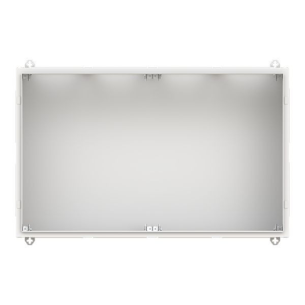Wandschrank, Baureihe TwinLine, Leerschrank, Montageart: Aufputz, teilversenkt, für den Innenbereich, ohne Tür, Schutzklasse II (schutzisoliert), Schutzart IP30, geltende Normen: DIN EN 61439-1, VDE 0660-600-1, DIN EN 61439-2, VDE 0660-600-2, DIN EN 61439-3, VDE 0660-600-3, IK-Code 08, pulverbeschichtet, in RAL 7035, Gehäuse aus Stahlblech, ohne Tür, Rückwand aus Stahlblech, Leitungseinführung oben über Flanschöffnung ausgeschnitten, unten über Flanschöffnung vorgeprägt, seitlich über Flanschöffnung vorgeprägt, Abmessungen in mm (H x B x T): 650 x 1050 x 275, Rasteinheit 4 RE, Bauhöhe 0, Feldbreite 4, Platzeinheiten 192, vorbereitet für den Ausbau mit Zähler-, Verteilerfelder, Kombi-Sets, CombiLine-Module auf EDF-/WR-Montagegerüst
