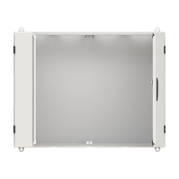 Wandschrank, Baureihe TwinLine, Leerschrank, Montageart: Aufputz, teilversenkt, für den Innenbereich, mit Tür, Schutzklasse I (geerdet), Schutzart IP55, geltende Normen: DIN EN 61439-1, VDE 0660-600-1, DIN EN 61439-2, VDE 0660-600-2, DIN EN 61439-3, VDE 0660-600-3, IK-Code 08, pulverbeschichtet, in RAL 7035, Gehäuse aus Stahlblech, Doppeltür, Tür aus Stahlblech, mit Standardverschluss Doppelbart 3 mm, Türöffnungswinkel 180 Grad, Türanschlag rechts und links, Rückwand aus Stahlblech, Leitungseinführung oben über Flanschöffnung ausgeschnitten, unten über Flanschöffnung vorgeprägt, seitlich über Flanschöffnung vorgeprägt, Abmessungen in mm (H x B x T): 800 x 1050 x 275, Rasteinheit 5 RE, Bauhöhe 1, Feldbreite 4, Platzeinheiten 240, vorbereitet für den Ausbau mit Zähler-, Verteilerfelder, Kombi-Sets, CombiLine-Module oder Montageplatten auf EDF-/WR-Montagegerüst