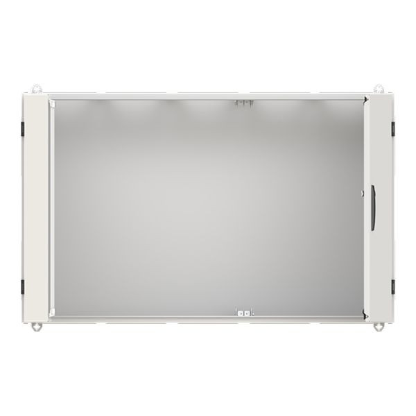 Wandschrank, Baureihe TwinLine, Leerschrank, Montageart: Aufputz, teilversenkt, für den Innenbereich, mit Tür, Schutzklasse I (geerdet), Schutzart IP55, geltende Normen: DIN EN 61439-1, VDE 0660-600-1, DIN EN 61439-2, VDE 0660-600-2, DIN EN 61439-3, VDE 0660-600-3, IK-Code 08, pulverbeschichtet, in RAL 7035, Gehäuse aus Stahlblech, Doppeltür, Tür aus Stahlblech, mit Standardverschluss Doppelbart 3 mm, Türöffnungswinkel 180 Grad, Türanschlag rechts und links, Rückwand aus Stahlblech, Leitungseinführung oben über Flanschöffnung ausgeschnitten, unten über Flanschöffnung vorgeprägt, seitlich über Flanschöffnung vorgeprägt, Abmessungen in mm (H x B x T): 800 x 1300 x 275, Rasteinheit 5 RE, Bauhöhe 1, Feldbreite 5, Platzeinheiten 300, vorbereitet für den Ausbau mit Zähler-, Verteilerfelder, Kombi-Sets, CombiLine-Module oder Montageplatten auf EDF-/WR-Montagegerüst