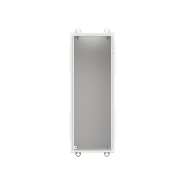 Wandschrank, Baureihe TwinLine, Leerschrank, Montageart: Aufputz, teilversenkt, für den Innenbereich, ohne Tür, Schutzklasse II (schutzisoliert), Schutzart IP30, geltende Normen: DIN EN 61439-1, VDE 0660-600-1, DIN EN 61439-2, VDE 0660-600-2, DIN EN 61439-3, VDE 0660-600-3, IK-Code 08, pulverbeschichtet, in RAL 7035, Gehäuse aus Stahlblech, ohne Tür, Rückwand aus Stahlblech, Leitungseinführung oben über Flanschöffnung ausgeschnitten, unten über Flanschöffnung vorgeprägt, seitlich über Flanschöffnung vorgeprägt, Abmessungen in mm (H x B x T): 800 x 300 x 350, Rasteinheit 5 RE, Bauhöhe 1, Feldbreite 1, Platzeinheiten 60, vorbereitet für den Ausbau mit Zähler-, Verteilerfelder, Kombi-Sets, CombiLine-Module auf EDF-/WR-Montagegerüst