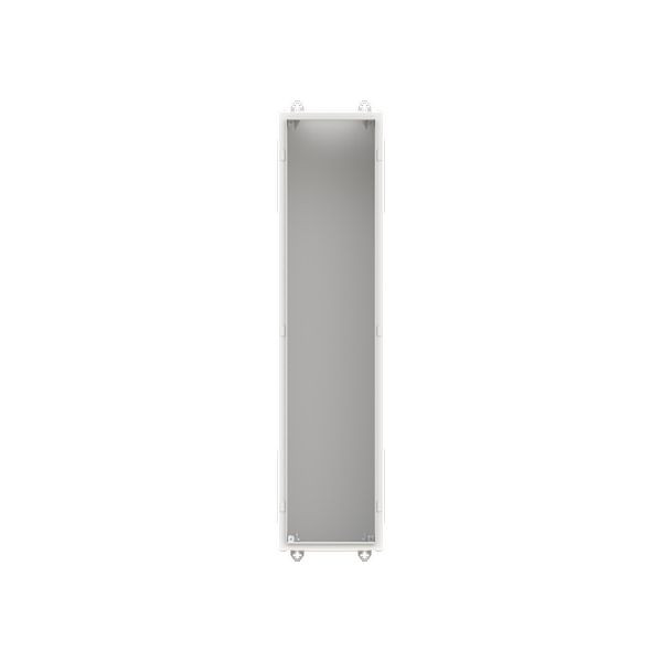 Wandschrank, Baureihe TwinLine, Leerschrank, Montageart: Aufputz, teilversenkt, für den Innenbereich, ohne Tür, Schutzklasse II (schutzisoliert), Schutzart IP30, geltende Normen: DIN EN 61439-1, VDE 0660-600-1, DIN EN 61439-2, VDE 0660-600-2, DIN EN 61439-3, VDE 0660-600-3, IK-Code 08, pulverbeschichtet, in RAL 7035, Gehäuse aus Stahlblech, ohne Tür, Rückwand aus Stahlblech, Leitungseinführung oben über Flanschöffnung ausgeschnitten, unten über Flanschöffnung vorgeprägt, seitlich über Flanschöffnung vorgeprägt, Abmessungen in mm (H x B x T): 1250 x 300 x 350, Rasteinheit 8 RE, Bauhöhe 4, Feldbreite 1, Platzeinheiten 96, vorbereitet für den Ausbau mit Zähler-, Verteilerfelder, Kombi-Sets, CombiLine-Module auf EDF-/WR-Montagegerüst