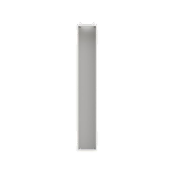 Standschrank, Baureihe TwinLine, Leerschrank, Montageart: Aufputz, teilversenkt, für den Innenbereich, ohne Tür, Schutzklasse I (geerdet), Schutzart IP30, geltende Normen: DIN EN 61439-1, VDE 0660-600-1, DIN EN 61439-2, VDE 0660-600-2, DIN EN 61439-3, VDE 0660-600-3, IK-Code 08, pulverbeschichtet, in RAL 7035, Gehäuse aus Stahlblech, ohne Tür, Rückwand aus Stahlblech, Leitungseinführung oben über Flanschöffnung ausgeschnitten, unten über Flanschöffnung vorgeprägt, seitlich über Flanschöffnung vorgeprägt, Abmessungen in mm (H x B x T): 1850 x 300 x 350, Rasteinheit 12 RE, Bauhöhe 8, Feldbreite 1, Platzeinheiten 144, vorbereitet für den Ausbau mit Zähler-, Verteilerfelder, Kombi-Sets, CombiLine-Module oder Montageplatten auf EDF-/WR-Montagegerüst