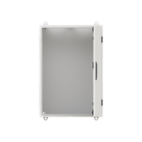 Wandschrank, Baureihe TwinLine, Leerschrank, Montageart: Aufputz, teilversenkt, für den Innenbereich, mit Tür, Schutzklasse II (schutzisoliert), Schutzart IP55, geltende Normen: DIN EN 61439-1, VDE 0660-600-1, DIN EN 61439-2, VDE 0660-600-2, DIN EN 61439-3, VDE 0660-600-3, IK-Code 08, pulverbeschichtet, in RAL 7035, Gehäuse aus Stahlblech, einflüglige Tür, Tür aus Stahlblech, mit Standardverschluss Doppelbart 3 mm, Türöffnungswinkel 180 Grad, Türanschlag rechts oder links, Rückwand aus Stahlblech, Leitungseinführung oben über Flanschöffnung ausgeschnitten, unten über Flanschöffnung vorgeprägt, seitlich über Flanschöffnung vorgeprägt, Abmessungen in mm (H x B x T): 800 x 550 x 350, Rasteinheit 5 RE, Bauhöhe 1, Feldbreite 2, Platzeinheiten 120, vorbereitet für den Ausbau mit Zähler-, Verteilerfelder, Kombi-Sets, CombiLine-Module auf EDF-/WR-Montagegerüst