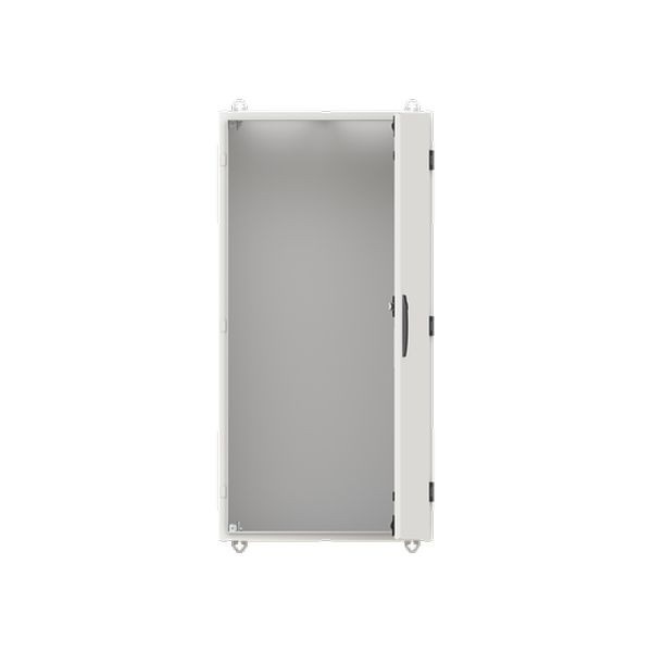 Wandschrank, Baureihe TwinLine, Leerschrank, Montageart: Aufputz, teilversenkt, für den Innenbereich, mit Tür, Schutzklasse II (schutzisoliert), Schutzart IP55, geltende Normen: DIN EN 61439-1, VDE 0660-600-1, DIN EN 61439-2, VDE 0660-600-2, DIN EN 61439-3, VDE 0660-600-3, IK-Code 08, pulverbeschichtet, in RAL 7035, Gehäuse aus Stahlblech, einflüglige Tür, Tür aus Stahlblech, mit Standardverschluss Doppelbart 3 mm, Türöffnungswinkel 180 Grad, Türanschlag rechts oder links, Rückwand aus Stahlblech, Leitungseinführung oben über Flanschöffnung ausgeschnitten, unten über Flanschöffnung vorgeprägt, seitlich über Flanschöffnung vorgeprägt, Abmessungen in mm (H x B x T): 1100 x 550 x 350, Rasteinheit 7 RE, Bauhöhe 3, Feldbreite 2, Platzeinheiten 168, vorbereitet für den Ausbau mit Zähler-, Verteilerfelder, Kombi-Sets, CombiLine-Module auf EDF-/WR-Montagegerüst