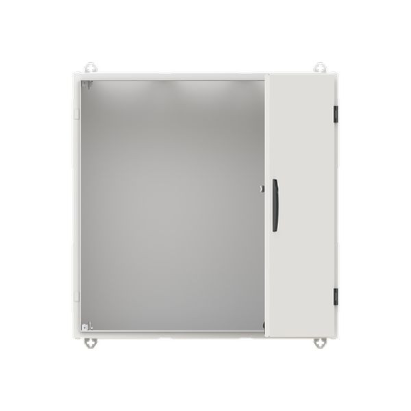 Wandschrank, Baureihe TwinLine, Leerschrank, Montageart: Aufputz, teilversenkt, für den Innenbereich, mit Tür, Schutzklasse I (geerdet), Schutzart IP55, geltende Normen: DIN EN 61439-1, VDE 0660-600-1, DIN EN 61439-2, VDE 0660-600-2, DIN EN 61439-3, VDE 0660-600-3, IK-Code 08, pulverbeschichtet, in RAL 7035, Gehäuse aus Stahlblech, einflüglige Tür, Tür aus Stahlblech, mit Standardverschluss Doppelbart 3 mm, Türöffnungswinkel 180 Grad, Türanschlag rechts oder links, Rückwand aus Stahlblech, Leitungseinführung oben über Flanschöffnung ausgeschnitten, unten über Flanschöffnung vorgeprägt, seitlich über Flanschöffnung vorgeprägt, Abmessungen in mm (H x B x T): 800 x 800 x 350, Rasteinheit 5 RE, Bauhöhe 1, Feldbreite 3, Platzeinheiten 180, vorbereitet für den Ausbau mit Zähler-, Verteilerfelder, Kombi-Sets, CombiLine-Module oder Montageplatten auf EDF-/WR-Montagegerüst
