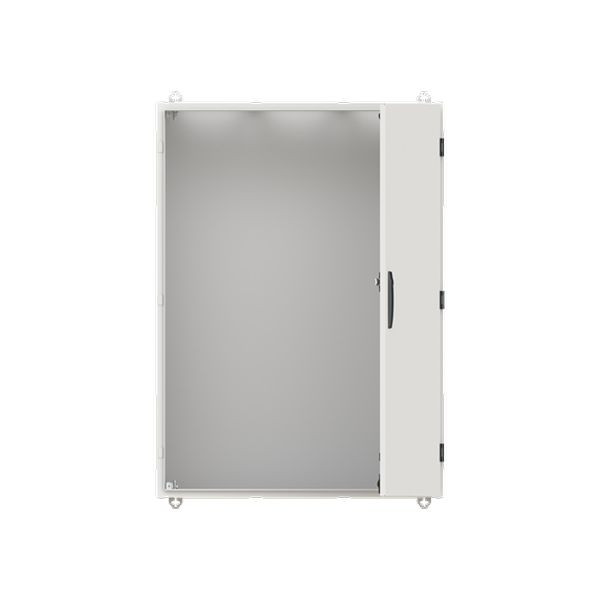 Wandschrank, Baureihe TwinLine, Leerschrank, Montageart: Aufputz, teilversenkt, für den Innenbereich, mit Tür, Schutzklasse II (schutzisoliert), Schutzart IP55, geltende Normen: DIN EN 61439-1, VDE 0660-600-1, DIN EN 61439-2, VDE 0660-600-2, DIN EN 61439-3, VDE 0660-600-3, IK-Code 08, pulverbeschichtet, in RAL 7035, Gehäuse aus Stahlblech, einflüglige Tür, Tür aus Stahlblech, mit Standardverschluss Doppelbart 3 mm, Türöffnungswinkel 180 Grad, Türanschlag rechts oder links, Rückwand aus Stahlblech, Leitungseinführung oben über Flanschöffnung ausgeschnitten, unten über Flanschöffnung vorgeprägt, seitlich über Flanschöffnung vorgeprägt, Abmessungen in mm (H x B x T): 1100 x 800 x 350, Rasteinheit 7 RE, Bauhöhe 3, Feldbreite 3, Platzeinheiten 252, vorbereitet für den Ausbau mit Zähler-, Verteilerfelder, Kombi-Sets, CombiLine-Module auf EDF-/WR-Montagegerüst