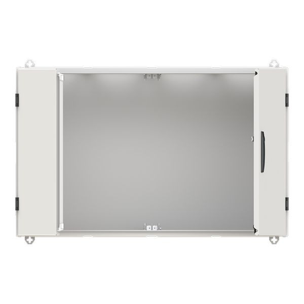 Wandschrank, Baureihe TwinLine, Leerschrank, Montageart: Aufputz, teilversenkt, für den Innenbereich, mit Tür, Schutzklasse II (schutzisoliert), Schutzart IP55, geltende Normen: DIN EN 61439-1, VDE 0660-600-1, DIN EN 61439-2, VDE 0660-600-2, DIN EN 61439-3, VDE 0660-600-3, IK-Code 08, pulverbeschichtet, in RAL 7035, Gehäuse aus Stahlblech, Doppeltür, Tür aus Stahlblech, mit Standardverschluss Doppelbart 3 mm, Türöffnungswinkel 180 Grad, Türanschlag rechts und links, Rückwand aus Stahlblech, Leitungseinführung oben über Flanschöffnung ausgeschnitten, unten über Flanschöffnung vorgeprägt, seitlich über Flanschöffnung vorgeprägt, Abmessungen in mm (H x B x T): 650 x 1050 x 350, Rasteinheit 4 RE, Bauhöhe 0, Feldbreite 4, Platzeinheiten 192, vorbereitet für den Ausbau mit Zähler-, Verteilerfelder, Kombi-Sets, CombiLine-Module auf EDF-/WR-Montagegerüst