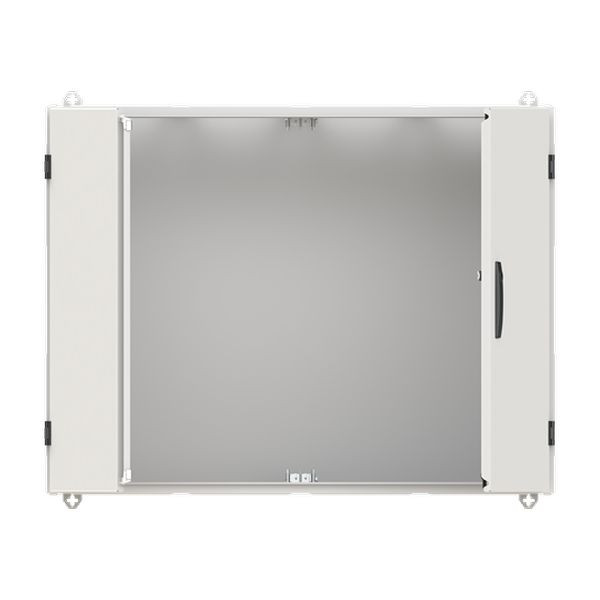Wandschrank, Baureihe TwinLine, Leerschrank, Montageart: Aufputz, teilversenkt, für den Innenbereich, mit Tür, Schutzklasse I (geerdet), Schutzart IP55, geltende Normen: DIN EN 61439-1, VDE 0660-600-1, DIN EN 61439-2, VDE 0660-600-2, DIN EN 61439-3, VDE 0660-600-3, IK-Code 08, pulverbeschichtet, in RAL 7035, Gehäuse aus Stahlblech, Doppeltür, Tür aus Stahlblech, mit Standardverschluss Doppelbart 3 mm, Türöffnungswinkel 180 Grad, Türanschlag rechts und links, Rückwand aus Stahlblech, Leitungseinführung oben über Flanschöffnung ausgeschnitten, unten über Flanschöffnung vorgeprägt, seitlich über Flanschöffnung vorgeprägt, Abmessungen in mm (H x B x T): 800 x 1050 x 350, Rasteinheit 5 RE, Bauhöhe 1, Feldbreite 4, Platzeinheiten 240, vorbereitet für den Ausbau mit Zähler-, Verteilerfelder, Kombi-Sets, CombiLine-Module oder Montageplatten auf EDF-/WR-Montagegerüst