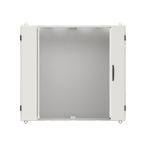 Wandschrank, Baureihe TwinLine, Leerschrank, Montageart: Aufputz, teilversenkt, für den Innenbereich, mit Tür, Schutzklasse I (geerdet), Schutzart IP55, geltende Normen: DIN EN 61439-1, VDE 0660-600-1, DIN EN 61439-2, VDE 0660-600-2, DIN EN 61439-3, VDE 0660-600-3, IK-Code 08, pulverbeschichtet, in RAL 7035, Gehäuse aus Stahlblech, Doppeltür, Tür aus Stahlblech, mit Standardverschluss Doppelbart 3 mm, Türöffnungswinkel 180 Grad, Türanschlag rechts und links, Rückwand aus Stahlblech, Leitungseinführung oben über Flanschöffnung ausgeschnitten, unten über Flanschöffnung vorgeprägt, seitlich über Flanschöffnung vorgeprägt, Abmessungen in mm (H x B x T): 950 x 1050 x 350, Rasteinheit 6 RE, Bauhöhe 2, Feldbreite 4, Platzeinheiten 288, vorbereitet für den Ausbau mit Zähler-, Verteilerfelder, Kombi-Sets, CombiLine-Module oder Montageplatten auf EDF-/WR-Montagegerüst