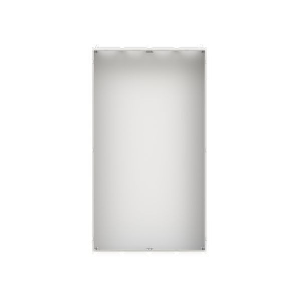 Standschrank, Baureihe TwinLine, Leerschrank, Montageart: Aufputz, teilversenkt, für den Innenbereich, ohne Tür, Schutzklasse II (schutzisoliert), Schutzart IP30, geltende Normen: DIN EN 61439-1, VDE 0660-600-1, DIN EN 61439-2, VDE 0660-600-2, DIN EN 61439-3, VDE 0660-600-3, IK-Code 08, pulverbeschichtet, in RAL 7035, Gehäuse aus Stahlblech, ohne Tür, Rückwand aus Stahlblech, Leitungseinführung oben über Flanschöffnung ausgeschnitten, unten über Flanschöffnung vorgeprägt, seitlich über Flanschöffnung vorgeprägt, Abmessungen in mm (H x B x T): 1850 x 1050 x 350, Rasteinheit 12 RE, Bauhöhe 8, Feldbreite 4, Platzeinheiten 576, vorbereitet für den Ausbau mit Zähler-, Verteilerfelder, Kombi-Sets, CombiLine-Module auf EDF-/WR-Montagegerüst