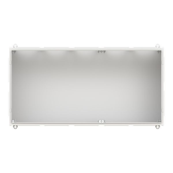 Wandschrank, Baureihe TwinLine, Leerschrank, Montageart: Aufputz, teilversenkt, für den Innenbereich, ohne Tür, Schutzklasse I (geerdet), Schutzart IP30, geltende Normen: DIN EN 61439-1, VDE 0660-600-1, DIN EN 61439-2, VDE 0660-600-2, DIN EN 61439-3, VDE 0660-600-3, IK-Code 08, pulverbeschichtet, in RAL 7035, Gehäuse aus Stahlblech, ohne Tür, Rückwand aus Stahlblech, Leitungseinführung oben über Flanschöffnung ausgeschnitten, unten über Flanschöffnung vorgeprägt, seitlich über Flanschöffnung vorgeprägt, Abmessungen in mm (H x B x T): 650 x 1300 x 350, Rasteinheit 4 RE, Bauhöhe 0, Feldbreite 5, Platzeinheiten 240, vorbereitet für den Ausbau mit Zähler-, Verteilerfelder, Kombi-Sets, CombiLine-Module oder Montageplatten auf EDF-/WR-Montagegerüst