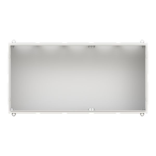 Wandschrank, Baureihe TwinLine, Leerschrank, Montageart: Aufputz, teilversenkt, für den Innenbereich, ohne Tür, Schutzklasse II (schutzisoliert), Schutzart IP30, geltende Normen: DIN EN 61439-1, VDE 0660-600-1, DIN EN 61439-2, VDE 0660-600-2, DIN EN 61439-3, VDE 0660-600-3, IK-Code 08, pulverbeschichtet, in RAL 7035, Gehäuse aus Stahlblech, ohne Tür, Rückwand aus Stahlblech, Leitungseinführung oben über Flanschöffnung ausgeschnitten, unten über Flanschöffnung vorgeprägt, seitlich über Flanschöffnung vorgeprägt, Abmessungen in mm (H x B x T): 650 x 1300 x 350, Rasteinheit 4 RE, Bauhöhe 0, Feldbreite 5, Platzeinheiten 240, vorbereitet für den Ausbau mit Zähler-, Verteilerfelder, Kombi-Sets, CombiLine-Module auf EDF-/WR-Montagegerüst