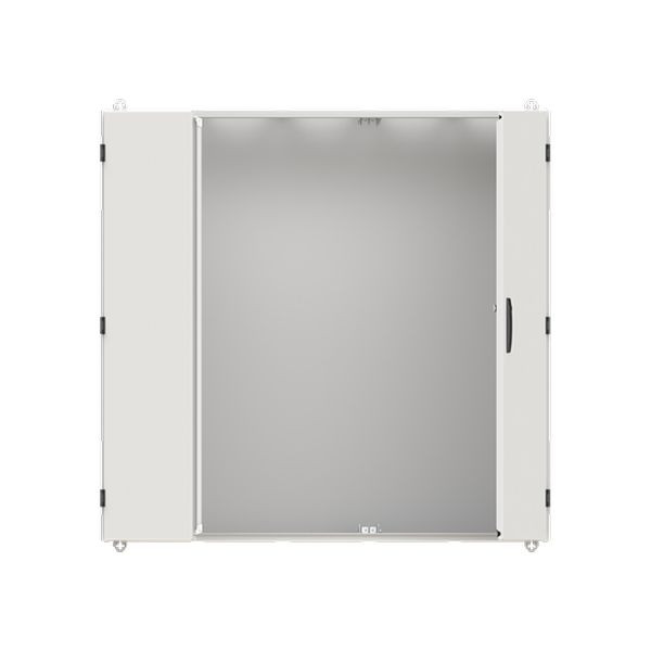Wandschrank, Baureihe TwinLine, Leerschrank, Montageart: Aufputz, teilversenkt, für den Innenbereich, mit Tür, Schutzklasse I (geerdet), Schutzart IP55, geltende Normen: DIN EN 61439-1, VDE 0660-600-1, DIN EN 61439-2, VDE 0660-600-2, DIN EN 61439-3, VDE 0660-600-3, IK-Code 08, pulverbeschichtet, in RAL 7035, Gehäuse aus Stahlblech, Doppeltür, Tür aus Stahlblech, mit Standardverschluss Doppelbart 3 mm, Türöffnungswinkel 180 Grad, Türanschlag rechts und links, Rückwand aus Stahlblech, Leitungseinführung oben über Flanschöffnung ausgeschnitten, unten über Flanschöffnung vorgeprägt, seitlich über Flanschöffnung vorgeprägt, Abmessungen in mm (H x B x T): 1250 x 1300 x 350, Rasteinheit 8 RE, Bauhöhe 4, Feldbreite 5, Platzeinheiten 480, vorbereitet für den Ausbau mit Zähler-, Verteilerfelder, Kombi-Sets, CombiLine-Module oder Montageplatten auf EDF-/WR-Montagegerüst
