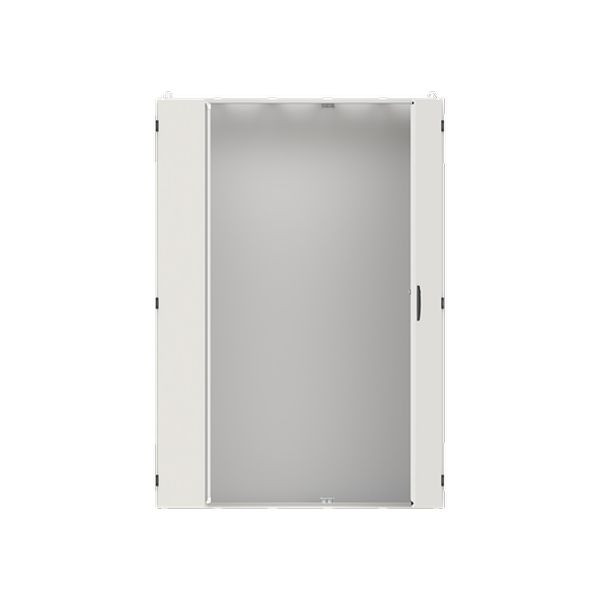 Standschrank, Baureihe TwinLine, Leerschrank, Montageart: Aufputz, teilversenkt, für den Innenbereich, mit Tür, Schutzklasse I (geerdet), Schutzart IP55, geltende Normen: DIN EN 61439-1, VDE 0660-600-1, DIN EN 61439-2, VDE 0660-600-2, DIN EN 61439-3, VDE 0660-600-3, IK-Code 08, pulverbeschichtet, in RAL 7035, Gehäuse aus Stahlblech, Doppeltür, Tür aus Stahlblech, mit Standardverschluss Doppelbart 3 mm, Türöffnungswinkel 180 Grad, Türanschlag rechts und links, Rückwand aus Stahlblech, Leitungseinführung oben über Flanschöffnung ausgeschnitten, unten über Flanschöffnung vorgeprägt, seitlich über Flanschöffnung vorgeprägt, Abmessungen in mm (H x B x T): 1850 x 1300 x 350, Rasteinheit 12 RE, Bauhöhe 8, Feldbreite 5, Platzeinheiten 720, vorbereitet für den Ausbau mit Zähler-, Verteilerfelder, Kombi-Sets, CombiLine-Module oder Montageplatten auf EDF-/WR-Montagegerüst