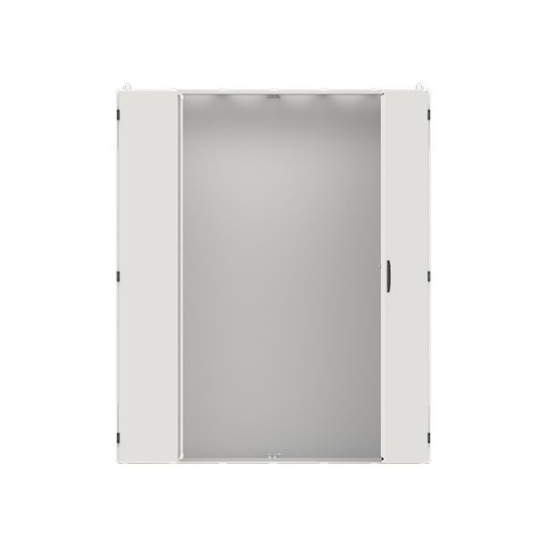 Standschrank, Baureihe TwinLine, Leerschrank, Montageart: Aufputz, teilversenkt, für den Innenbereich, mit Tür, Schutzklasse II (schutzisoliert), Schutzart IP55, geltende Normen: DIN EN 61439-1, VDE 0660-600-1, DIN EN 61439-2, VDE 0660-600-2, DIN EN 61439-3, VDE 0660-600-3, IK-Code 08, pulverbeschichtet, in RAL 7035, Gehäuse aus Stahlblech, Doppeltür, Tür aus Stahlblech, mit Standardverschluss Doppelbart 3 mm, Türöffnungswinkel 180 Grad, Türanschlag rechts und links, Rückwand aus Stahlblech, Leitungseinführung oben über Flanschöffnung ausgeschnitten, unten über Flanschöffnung vorgeprägt, seitlich über Flanschöffnung vorgeprägt, Abmessungen in mm (H x B x T): 1850 x 1550 x 350, Rasteinheit 12 RE, Bauhöhe 8, Feldbreite 6, Platzeinheiten 864, vorbereitet für den Ausbau mit Zähler-, Verteilerfelder, Kombi-Sets, CombiLine-Module auf EDF-/WR-Montagegerüst