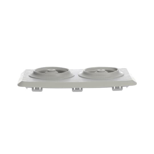 Flansche mit zwei Kabeltüllen, mit integrierter Dichtung, Material Kunststoff, Montage ohne Werkzeug durch Rasttechnik, 2 Kabeltüllen 14 - 68 mm, passend für TwinLine Wand- und Standschränke.