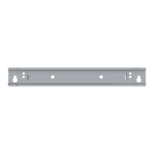 Geräteträger mit lösbaren Hutprofilschiene passend zu UK61..., der stabile Metall Geräteträger ist dank Schlüssellloch Technik einfach und schnell montierbar.