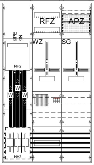| Kurzbeschreibung | Komplettschrank nach FNN, in 250 A, mit Dreipunkt-Befestigung |