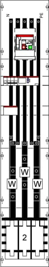 Wandlerfeld für EEG, Komplettfeld, für den Innenbereich, Schutzart IP2XC, geltende Normen: DIN EN 61439-1, VDE 0660-600-1, DIN EN 61439-2, VDE 0660-600-2, Bemessungsbetriebsspannung Ue 415V AC 50/60 Hz, Bemessungsstrom In 220 A, Bemessungsstrom der Schaltgerätekombination InA 115 A, in RAL 7035, Abmessungen in mm (H x B x T): 1350 x 250 x 160, Netzsystem TN-S, 5-polig, Lastbereich: Sammelschienensystem Cu-Schienen 12 x 5 mm 5-polig, Trennstelle vor dem Wandler Sicherungsunterteil NH2/400 A, Wandlerbereich Wandlerauflage mit herausnehmbarer Wandlerlasche 170 x 30 x 5 mm, Ritz: EKS 60-03, EKS 70-04, EKSO 74, MBS: EASK 31.3, EASK 31.4, EASK 31.5, EASK 41.4, EASK 41.5 (Beistellung NB), Trennstelle nach dem Wandler NA-Schutz mit XT4 Leistungsschalter (M8), Primärverdrahtung L1-L3 Cu-Schiene 30 x 5 und 20 x 5, PE+N Cu-Schiene 20 x 5 mm, Anschluss N+PE (M8), Rasteinheit 9 RE, Bauhöhe 5, Feldbreite 1, Platzeinheiten 108, Abdeckungen aus Kunststoff, plombierbarer Schnellverschluss, RAL 7035