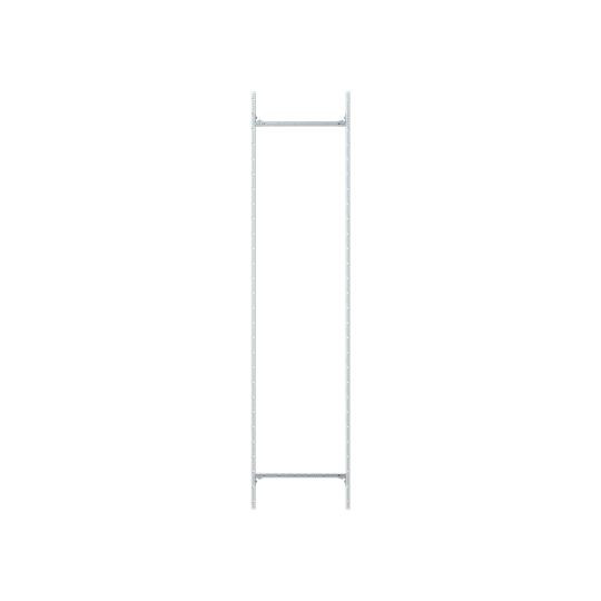 WR-Montagegerüst, Feldbreite 2, Bauhöhe 10 (14 RE) 2100mm, bestehend aus WR-Profilschiene vertikal mit Quer-Profilschiene, für alle Stand- und Reihenschaltschränke ab einer Tiefe von 225 mm. Wird benötigt beim freien Aufbau auf das WR-Montagegerüst, beim Einbau von EDF-Einbausatz WNF (ab Schranktiefe 425 mm) und beim Ausbau mit Modulen auf WR-Montagegerüst.