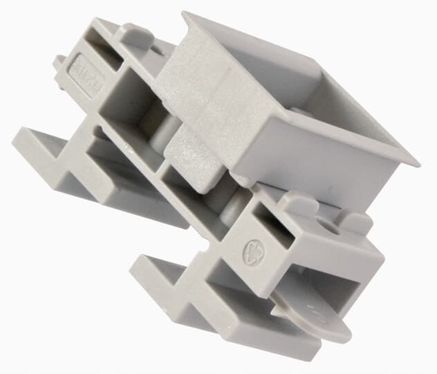 Geräteböckchen zum Aufrasten auf Sammelschienensystem im Zählerfeld, Breite 40 mm, für Cu 12 x 5 mm, zwischen zwei S751 je Feldbreite.