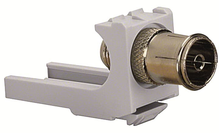KOAX Verbinder mit Adapter in Modulbauform, vorne IEC Buchse, hinten F-Buchse, 75 Ohm-Durchgangskupplung, ohne Abschluss und Koppelelemente.