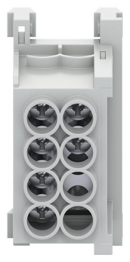 Hauptleitungsklemme 1-polig, 2x 25qmm und 2x 16qmm je Pol (4 Klemmstellen), Nennstrom 80A, Schutzklasse IP20, fingersicher, zur Montage auf Hutschienen