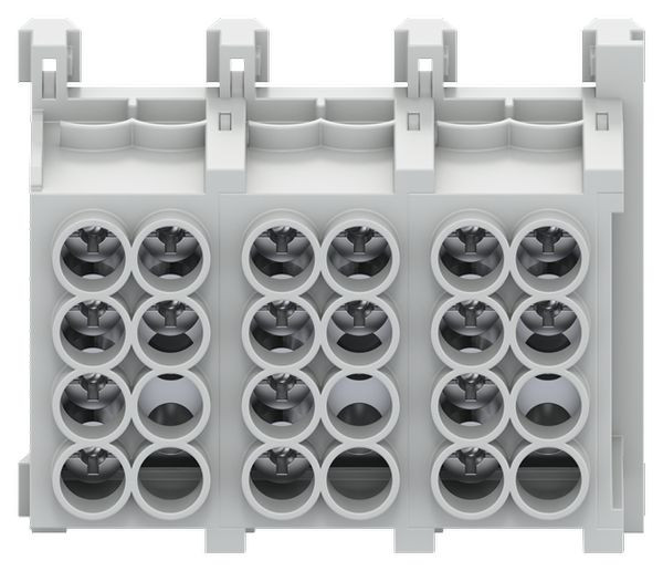 Hauptleitungsklemme 3-polig, 2x 25qmm und 2x 16qmm je Pol (4 Klemmstellen), Nennstrom 80A, Schutzklasse IP20, fingersicher, zur Montage auf Hutschienen