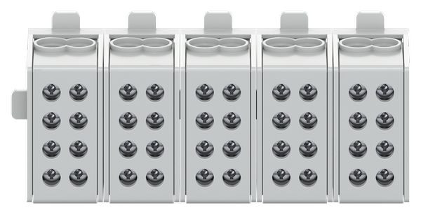 Hauptleitungsklemme 5-polig, 2x 35qmm und 2x 25qmm je Pol (4 Klemmstellen), Nennstrom 100A, Schutzklasse IP20, fingersicher, zur Montage auf Hutschienen