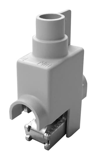 Anschlussklemmen, zum Aufrasten auf Cu-Schienen mit Haltefeder, Einsatzbereich für Kupfer-Schienen Stärke: 10 mm, Anschlussquerschnitt von 1,5 mm² bis 16 mm², Verpackungseinheit 1 Stück