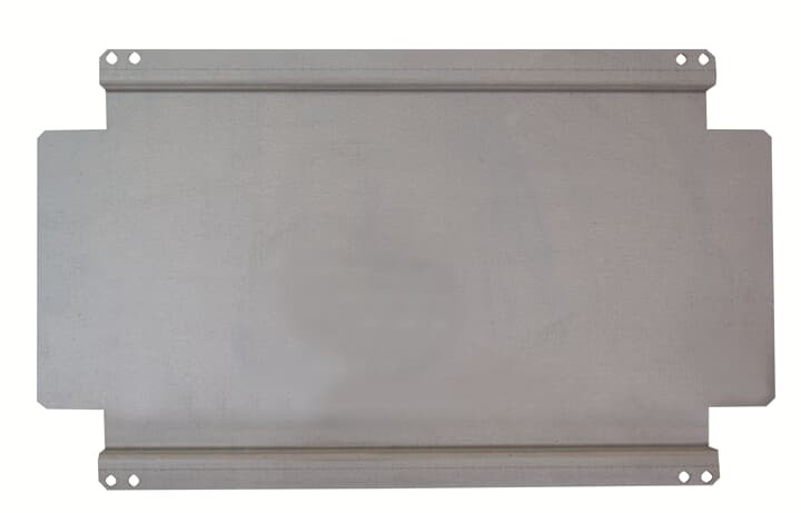Montageplatte aus Stahlblech 2mm, H x B: 416 x 200 mm, für Feldbreite 1 (3 RE), Montage auf dem Montagegerüst, für aufgesetzte Montage im Kleinverteiler ohne Tiefbauwinkel, passend für M(B)M113K.