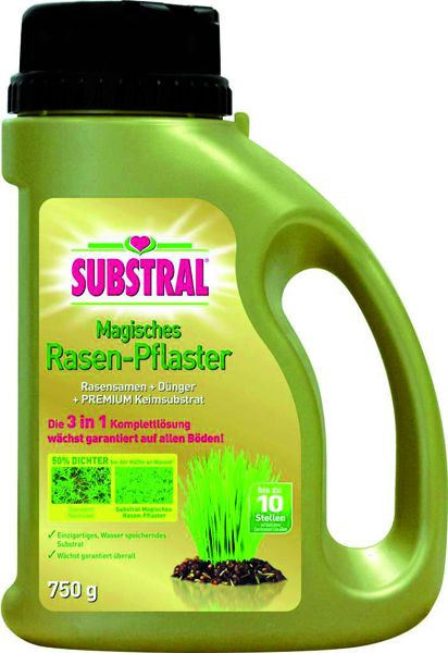die 3 in 1 Komplettlösung, Rasensamen+Dünger+wasserspeicherndes Premium Keimsubstrat, wächst auf allen Böden, Inhalt: 750 g Magisches Rasen-Pflaster die 3 in 1 Komplettlösung, Rasensamen+Dünger+wasserspeicherndes Premium Keimsubstrat, wächst auf allen Böden, Inhalt: 750 g