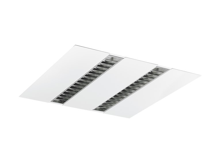 Lineare LED-Deckeneinbauleuchte (lay-in), mit Raster + Prismenoptik, direkte Lichtverteilung, Abmessungen der Leuchte: 595x595x60 mm, Gehäusefarbe Sylvania Weiß, IP20, IK07, Abmessungen der Light Engine: 570x130 mm, Konstantstrom, Geringes LED-Flackern (+/-5%), Warmweiß (3.000 K) LED-Farbtemperatur, 2800 lm, 28 W, 100 lm/W Effizienz, CRI>80, 3 SDCM (3-stufige MacAdam-Ellipse) LED-Farbkonsistenz, UGR<19, Leuchtdichte bei 65° < 3000 cd/m2, Lichtstromerhaltung: L90B10 bei 50.000 Stunden, Glühdrahtprüfung 850 °C, Schneller und einfacher elektrischer Anschluss mit direktem Zugang zu den Steckverbindern auf der Oberseite, 2 x metallische Sicherheitskabel (1,5m) im Lieferumfang enthalten, die Leuchte kann mit einer Gebäudedämmung vom Typ Glaswolle abgedeckt werden.