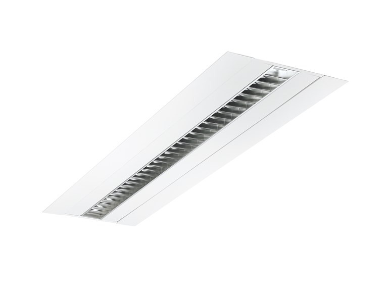 Lineare LED-Deckeneinbauleuchte (lay-in), mit Raster + Prismenoptik, direkte Lichtverteilung, Abmessungen der Leuchte: 1196x296x60 mm, Gehäusefarbe Sylvania Weiß, IP20, IK07, Abmessungen der Light Engine: 1130x65 mm, Konstantstrom, Geringes LED-Flackern (+/-5%), Warmweiße (3.000 K) LED-Farbtemperatur, 2900 lm, 28 W, 104 lm/W-Effizienz, CRI>80, 3 SDCM (3-stufige MacAdam-Ellipse) LED-Farbkonsistenz, UGR<19, Leuchtdichte bei 65° < 3000 cd/m2, Lumenerhalt: L90B10 bei 50.000 Stunden, Glühdrahtprüfung 850 °C, Schneller und einfacher elektrischer Anschluss mit direktem Zugang zu den Steckverbindern auf der Oberseite, 2 x metallische Sicherheitskabel (1,5m) im Lieferumfang enthalten, die Leuchte kann mit einer Gebäudedämmung vom Typ Glaswolle abgedeckt werden.