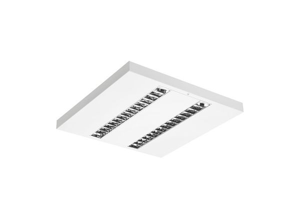 LED-Anbau- oder Pendelleuchte mit Mikroprismenoptik, Direkte Lichtverteilung, Abmessungen der Leuchte: 616x616x56 mm, Gehäusefarbe Weiß, IP20, IK07, Konstantstrom, Notbetrieb 3 Stunden, Geringes LED-Flackern (+/-5%), LED-Farbtemperatur Neutralweiß (4.000 K), 3500 lm, 32 W, 109 lm/W Effizienz, CRI>80, 3 SDCM (3-stufige MacAdam-Ellipse) LED-Farbkonsistenz, UGR<15, Leuchtdichte bei 65° < 3000 cd/m2, Lebensdauer: 96.000 Stunden L80B20, Schneller elektrischer Anschluss mit Steckverbindern in der Leuchte, Glühdrahtprüfung 850 °C.