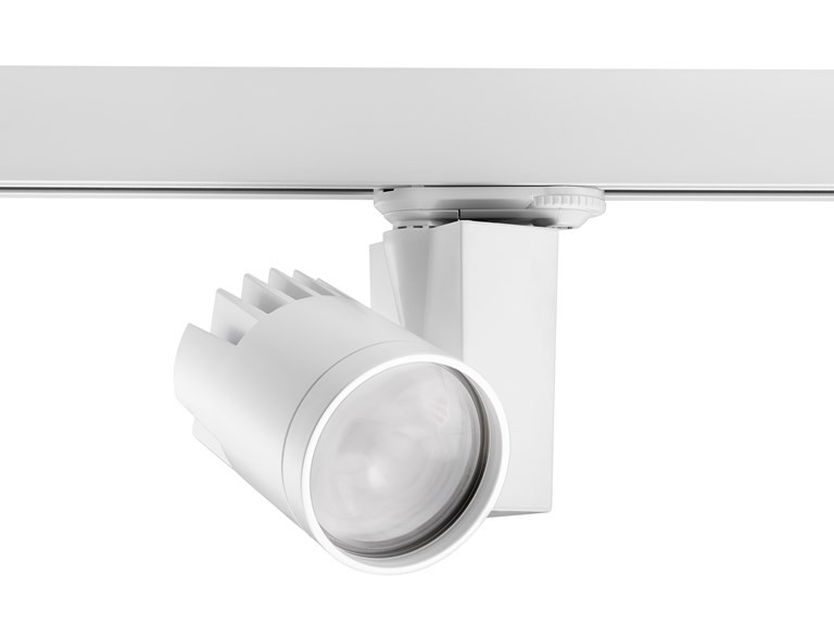 LED-Einbaustrahler, weiß RAL 9016, kompaktes und minimalistisches Design, ideal für Einzelhandel, Displays, Museen und Galerien, Gehäuse aus Aluminiumdruckguss, passiver Kühlkörper, Abstrahlwinkel: 12° engstrahlend, Optik: Fresnellinse für kontrollierten Strahl, Farbtemperatur: 3.000 K warmweiß, Gesamtsystemleistung: 21 W, Gesamtleistung der Leuchte: 1512 lm, Leuchtenwirkungsgrad: 72 lm/W, LOR: 100 %, Farbwiedergabe: Ra 93 typisch, LED Chromacity: 3-stufige MacAdam-Ellipse, Lebensdauer: >72.000 Stunden bei L80B50, Energieklasse: A++, A+, A, IR/UV freie Lichtquelle ohne Wärmestrahlung, Betriebsspannung: 220-240 V / 50-60 Hz, Antriebsstrom: 500 mA, elektronischer Treiber, dimmbar über On-Board-Potentiometer, Leistungsfaktor: 0,9 elektrischer Schutz: KLASSE II, 3-Phasen-Schienenadapter, geeignet für Concord Lytespan 3-Schienen, Schutzart: IP20, nur für den Innenbereich geeignet, horizontale Drehung: 355°, vertikale Neigung: 90°, Abmessungen: Ø80x130x190 mm, Gewicht: 0,96kg.