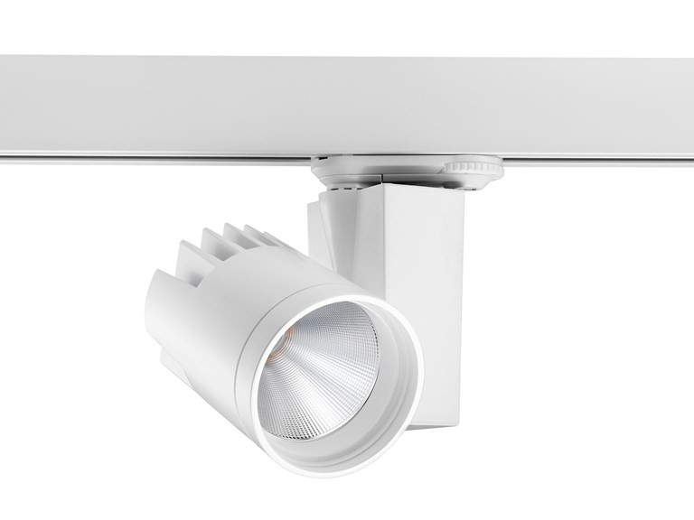 LED-Einbaustrahler, weiß RAL 9016, kompaktes und minimalistisches Design, ideal für Einzelhandel, Ausstellungen, Museen und Galerien, Gehäuse aus Aluminiumdruckguss, Kühlkörper mit passiver Kühlung, Abstrahlwinkel: 38° mittel, Optik: Aluminium-Reflektor, Farbtemperatur: 4.000 K neutralweiß, Gesamtsystemleistung: 21 W, Gesamtleistung der Leuchte: 1885 lm, Leuchtenwirkungsgrad: 90 lm/W, LOR: 100 %, Farbwiedergabe: Ra 93 typisch, LED Chromacity: 3-stufige MacAdam-Ellipse, Lebensdauer: >72.000 Stunden bei L80B50, Energieklasse: A++, A+, A, IR/UV freie Lichtquelle ohne Wärmestrahlung, Betriebsspannung: 220-240 V / 50-60 Hz, Antriebsstrom: 500 mA, elektronischer Treiber, Hinterkante dimmbar, Leistungsfaktor: 0,9 elektrischer Schutz: KLASSE II, 3-Phasen-Schienenadapter, geeignet für Concord Lytespan 3-Schienen, Schutzart: IP20, nur für den Innenbereich geeignet, horizontal drehbar: 355°, vertikale Neigung: 90°, Abmessungen: Ø80x130x190 mm, Gewicht: 0,96kg.