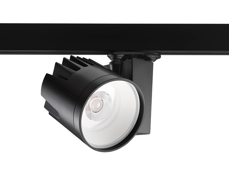 LED-Einbaustrahler, schwarz RAL 9005, kompaktes und minimalistisches Design, ideal für Einzelhandel, Displays, Museen und Galerien, Gehäuse aus Aluminiumdruckguss, Kühlkörper mit passiver Kühlung, Abstrahlwinkel: 34° mittlerer Abstrahlwinkel, Optik: Polycarbonat-Linse, Farbtemperatur: 4.000 K neutralweiß, Gesamtsystemleistung: 33 W, Gesamtleistung der Leuchte: 3314 lm, Leuchtenwirkungsgrad: 100 lm/W, LOR: 100 %, Farbwiedergabe: Ra 93 typisch, LED Chromacity: 3-stufige MacAdam-Ellipse, IR/UV-freie Lichtquelle ohne Wärmestrahlung, Betriebsspannung: 220-240 V / 50-60 Hz, Antriebsstrom: 850 mA, elektronischer Treiber, dimmbar über On-Board-Potentiometer, Leistungsfaktor: 0,9 elektrischer Schutz: KLASSE II, 3-Phasen-Schienenadapter, geeignet für Concord Lytespan 3-Schienen, Schutzart: IP20, nur für den Innenbereich geeignet, horizontale Drehung: 355°, vertikale Neigung: 90°, Abmessungen: Ø113x165x205 mm, Gewicht: 1,66kg.