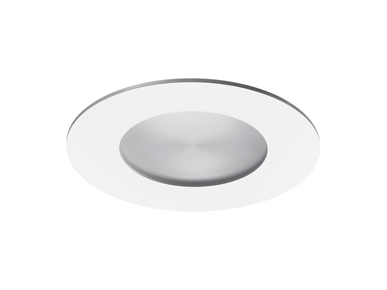 Insaver HE Topper ist ein Deckeneinbau-LED-Downlight mit einem Ausschnitt von 145 mm. Gehäuse aus Aluminiumdruckguss, nicht dimmbarer LED-Treiber, 8 W, 800 lm, 100 lm/W, 4.000 K, geringe Einbautiefe von 55 mm.
