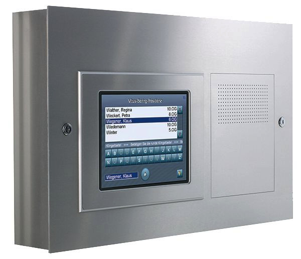 farbiger Touchscreen, 30,5 cm (12,1 Zoll ), Frontverglasung nach Schutzart IP65, hochwertiges Edelstahlgehäuse modular erweiterbar mit: Zutrittskontrolle, Video, Gefahrenalarmierung, Pförtnerruf, Postschloss, mehrsprachige Bedienerführung (während der Benutzung veränderbar), zusätzliche Information einblendbar: wie Besuchszeiten, Lagepläne, Werbung, Codeschlossfunktion (Anzahl der Codes: sechs 6-stellige Codes für alle, Bewohner und je Bewohner ist ein 4-stelliger individueller Code möglich), Quittungston beim Drücken der Klingeltaste, zulässige Umgebungstemperatur: -20 Grad C bis 50 Grad C, Zur Vermeidung der Überhitzung des Gerätes während dem Betrieb ist folgendes zu beachten: Das Gerät darf nicht der direkten Sonneneinstrahlung ausgesetzt werden, Direkte Sonneneinstrahlung (UV-Anteil) bewirkt eine Reduzierung der Lebensdauer der Flüssigkristalle des Gerätes, Maße: Frontplatte: H 480 mm x B 760 mm x T 123 mm