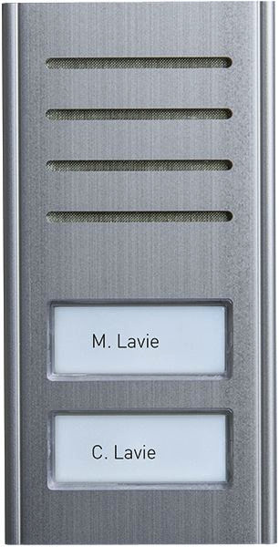Serie ASX die extrem schlanke Außenstation hat geringere Maße als ein Smartphone und passt auch auf schmale Türlaibungen oder Zaunpfosten, ultra-kompakte Bauform, Aluminium eloxiert, für bis zu 6 Wohneinheiten, minimale Produkttiefe von nur 16 mm, Namensbeschriftung mit energiesparenden LEDs hinterleuchtet, Wetterschutz erhältlich, 2-Draht-Betrieb möglich
