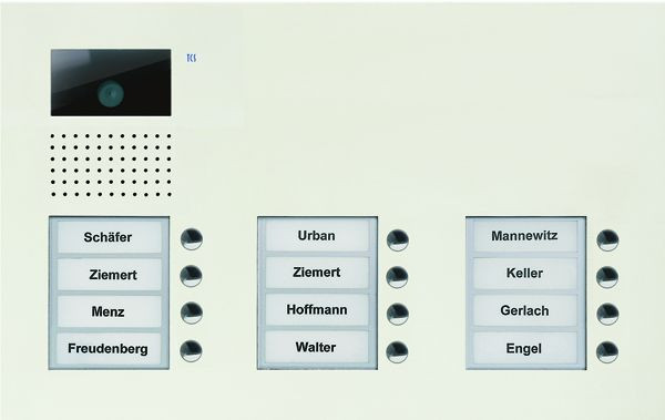 | Kurzbeschreibung | Video Außenstation Serie AVU mit 12 Klingeltasten (rechtsbündig), 3-spaltig, UP weiß |