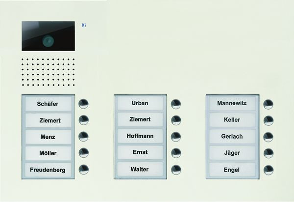 | Kurzbeschreibung | Video Außenstation Serie AVU mit 15 Klingeltasten (rechtsbündig), 3-spaltig, UP weiß |