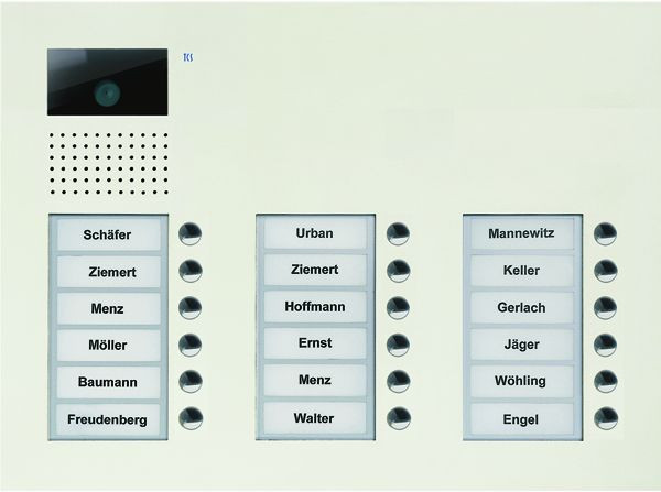 | Kurzbeschreibung | Video Außenstation Serie AVU mit 18 Klingeltasten (rechtsbündig), 3-spaltig, UP weiß |
