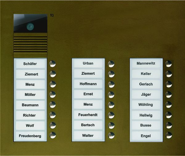 | Kurzbeschreibung | Video Außenstation Serie AVU mit 24 Klingeltasten (rechtsbündig), 3-spaltig, UP bronze |