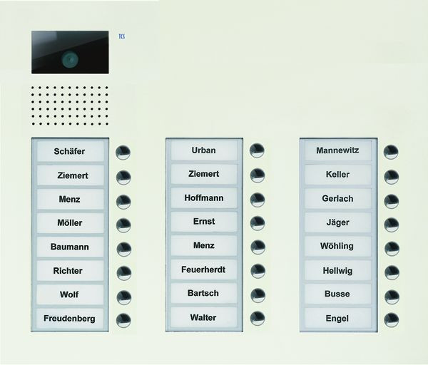 | Kurzbeschreibung | Video Außenstation Serie AVU mit 24 Klingeltasten (rechtsbündig), 3-spaltig, UP weiß |