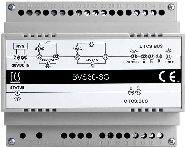 für die Verbindung von Unteranlagen zu Großanlagen, maximaler Schleifenwiderstand: 20 Ohm, Eingangsspannung: 26 V DC, Türöffnerfunktion mit potentialfreien Relaiskontakt, (Schließer: 24 V DC / 2 A), Lichtschaltfunktion mit potentialfreien Relaiskontakt, (Schließer: 24 V DC / 1 A), Türöffner ab Werk: 3 Sekunden / nicht einstellbar, Lichtschaltzeit ab Werk: 0,5 Sekunden / nicht einstellbar, Reiheneinbaugehäuse 6 TE für Hutschiene DIN EN 50022, Maße: H 90 mm x B 105 mm x T 70 mm